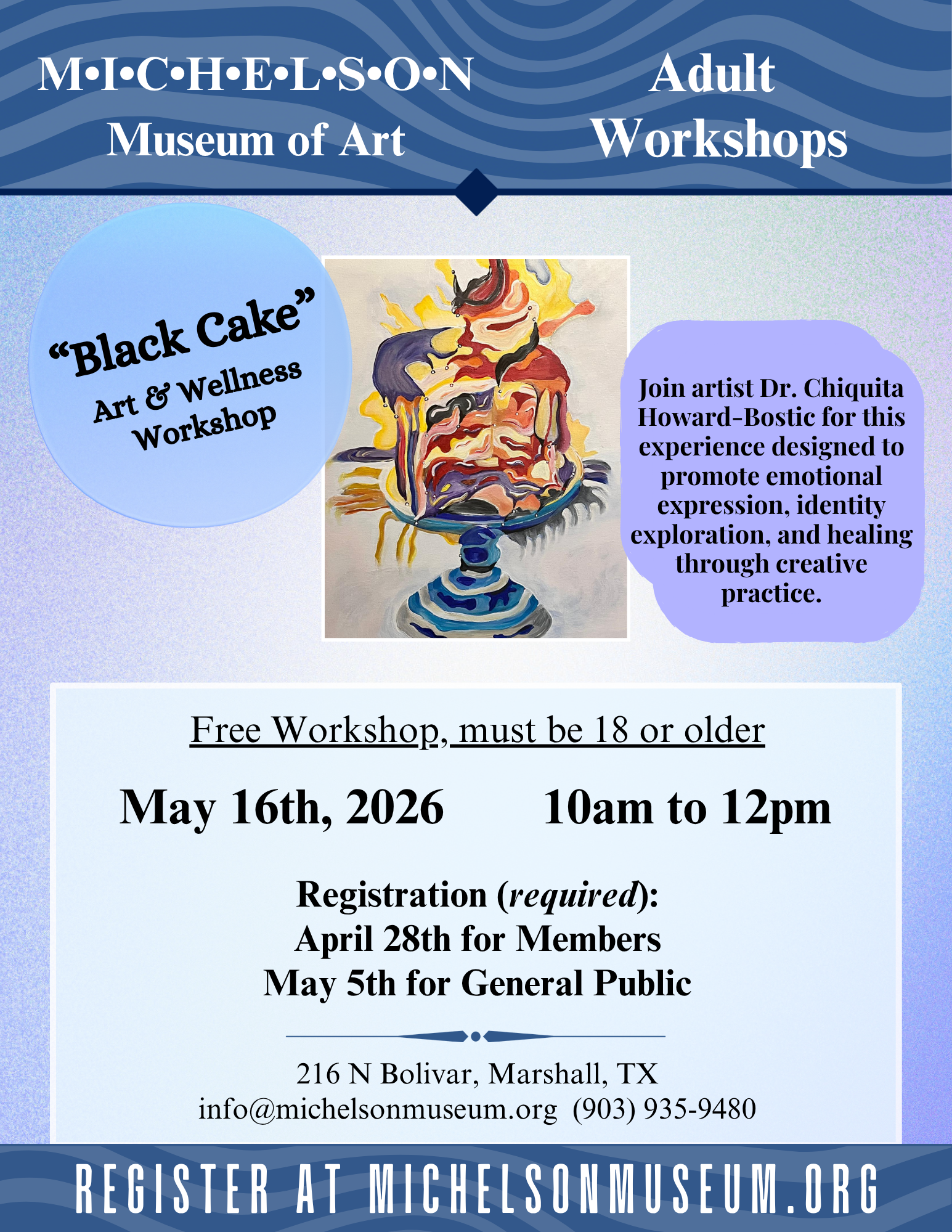 Free admission, but registration is required. Must be 18 or older.
