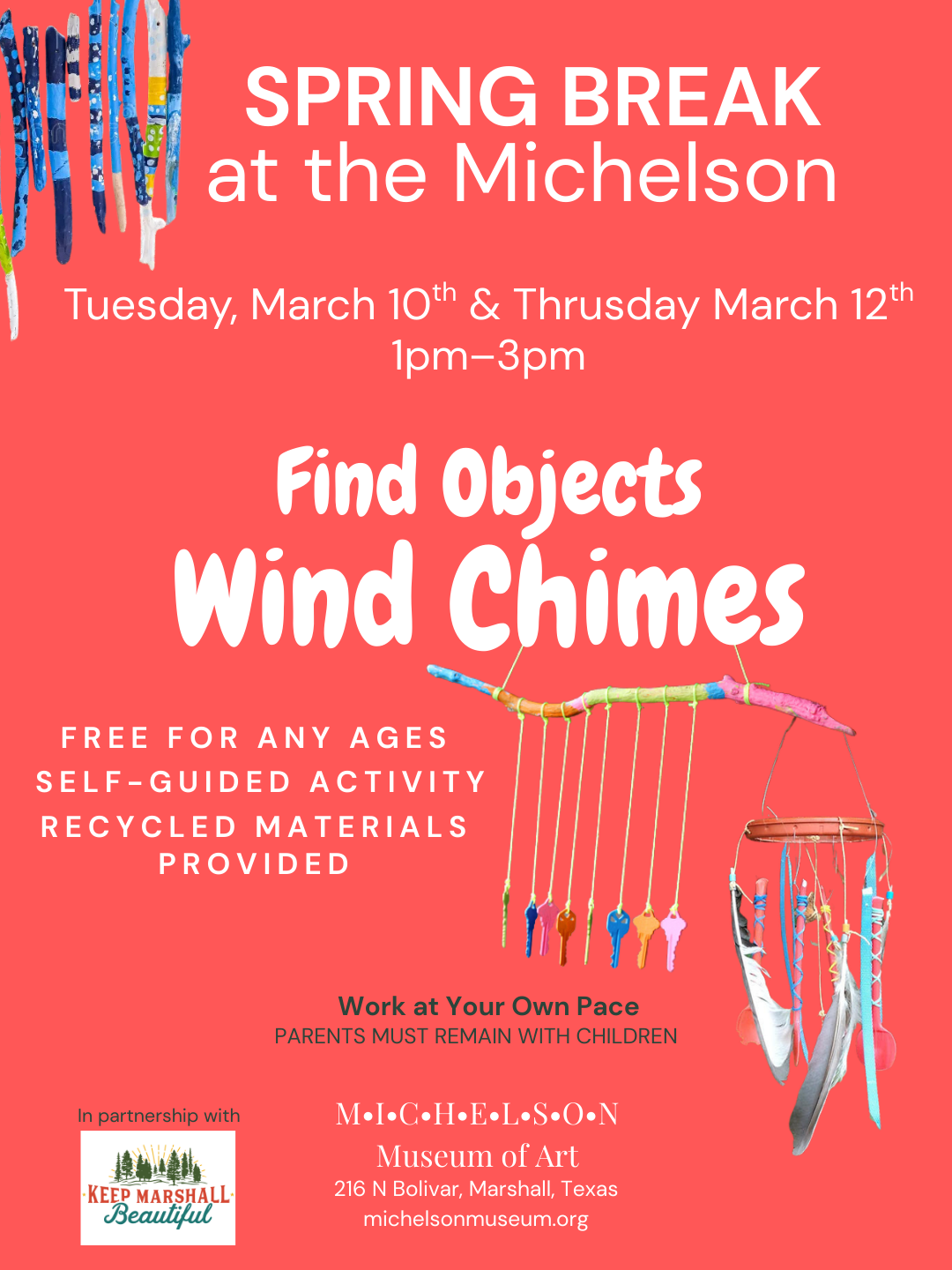Create Find Objects Wind Chimes using recycled materials. Open to all ages and work at your own pace.